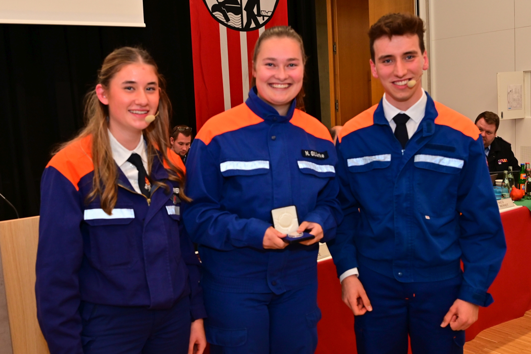 Das Ehrenzeichen der Niedersächsischen Kinder- und Jugendfeuerwehr erhielten: Till Pleßmann (ehem. Landesjugendsprecher, Bezirksjugendsprecher und aktuell stellv. Bezirks- Kinder- und Jugendfeuerwehrwart Hannover), Susanne Schöndube (Langjährige Mitarbeiterin Geschäftsstelle) und Michaela Stein (langjähriges sehr engagiertes Wirken im Bereich der Kinderfeuerwehren).