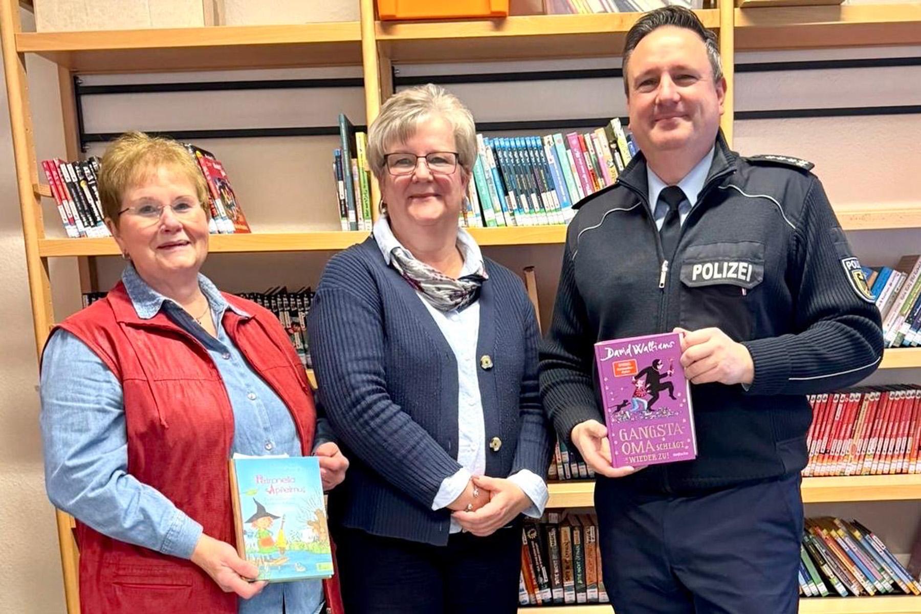 Beim bundesweiten Vorlesetag in Ilten (von links): Ehrenbürgermeisterin Gisela Neuse, Schulleiterin Regina Hecht und Erster Polizeihauptkommissar Sandy Steve Choitz.