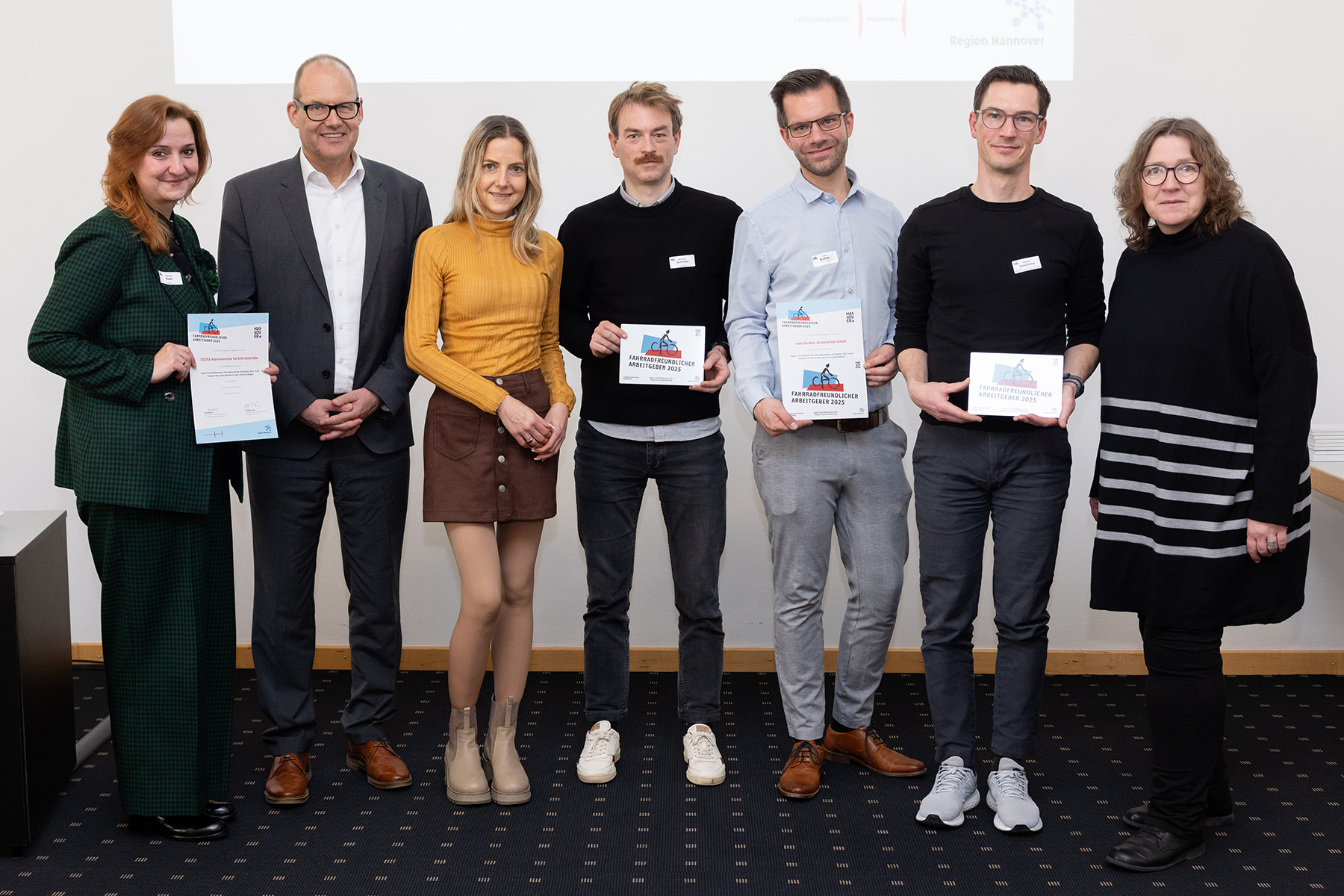 Drei Unternehmen haben den Wettbewerb „Fahrradfreundlicher Arbeitgeber“ aus der Region Hannover jeweils in ihrer Kategorie gewonnen: meta Fackler Arzneimittel GmbH aus Springe, die Betreuungskette Am Seelberg GmbH sowie die ÜSTRA, beide mit Sitz in der Landeshauptstadt.
