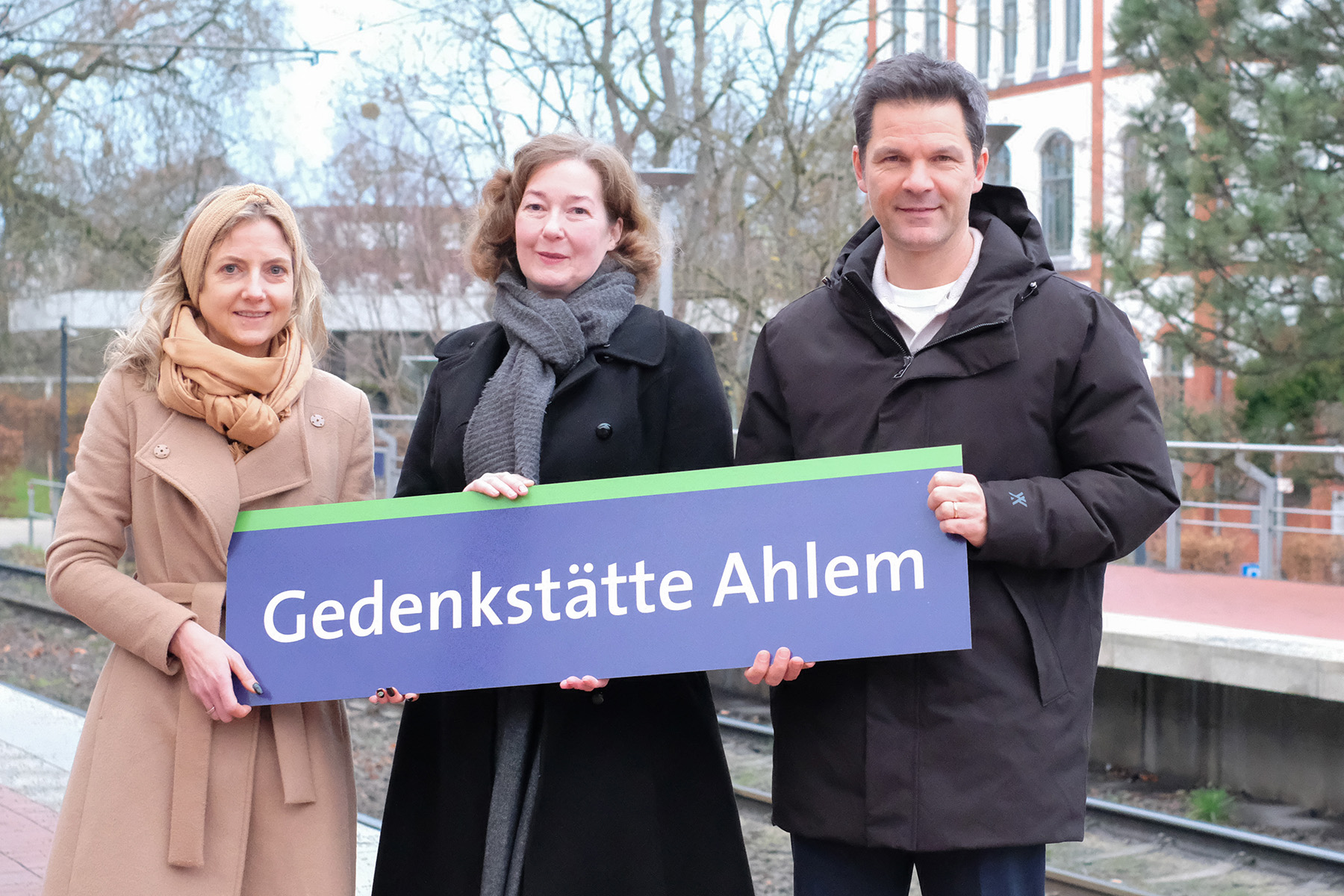 Zum Fahrplanwechsel am 14. Dezember 2025 erhält die Haltestelle Ehrhartstraße der Stadtbahnlinie 10 einen neuen Namen: Künftig heißt der Haltepunkt „Gedenkstätte Ahlem“. Mit dieser Umbenennung wird ein deutliches Zeichen für Erinnerungsarbeit und Demokratiebildung gesetzt. Am Montag, 10. Dezember, präsentierten Regionspräsident Steffen Krach, ÜSTRA-Vorständin Elke van Zadel und die Leiterin der Gedenkstätte, Stefanie Burmeister, das neue Haltestellenschild am Hochbahnsteig.