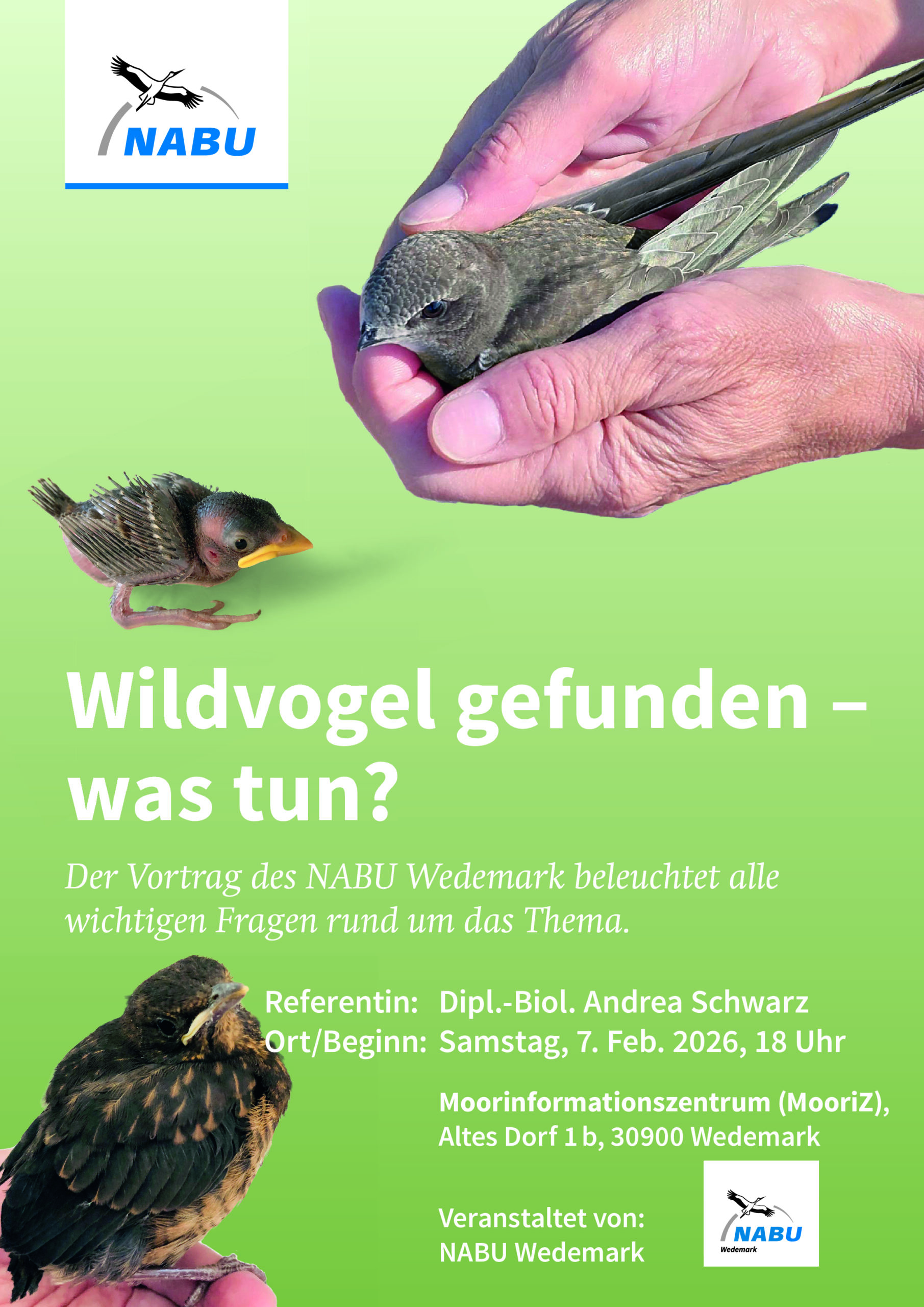 Wann ist ein gefundener Vogel wirklich in Not? Die Dipl.-Biologin Andrea Schwarz beleuchtet in ihrem Vortrag Wissenswertes zur Einschätzung der Situation, zu Erste-Hilfe-Maßnahmen und zum Finden geeigneter Pflegestellen.