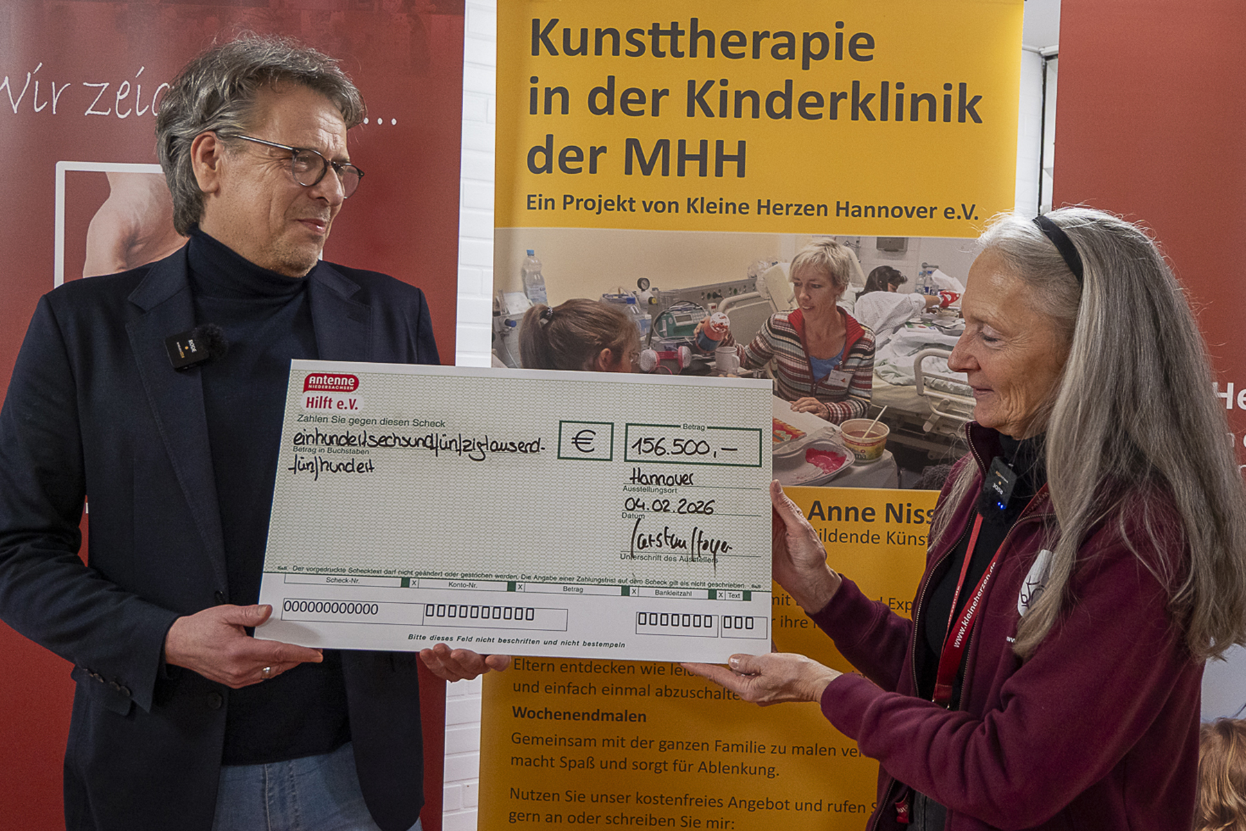 Eigentlich sollte der Spendenmarathon im Dezember bei 100.000 Euro enden. Doch auch danach spendeten viele Hörerinnen und Hörer weiter, so dass „Antenne“ letztlich einen Scheck über unglaubliche 156.500 Euro in der Kinderklinik der Medizinischen Hochschule Hannover übergeben konnte. Zusätzlich unterstützten der Landesapothekerverband und die Apothekerkammer Niedersachsen die Aktion mit 2.360 Euro. Der Verband hatte über sein Netzwerk niedersächsischer Apotheken die Kleine-Herzen-Flyer verteilt und so zu Spenden aufgerufen.